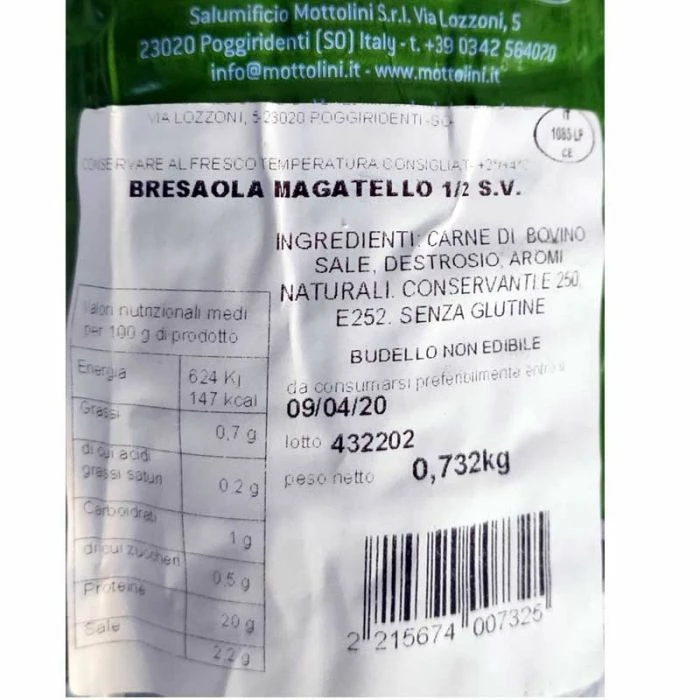 La bresaola di Magatello è uno dei salumi più noti, prodotto in Valtellina, è ottenuto dalla selezione di parti nobili, come il magatello ricavabile dalle fasce muscolari della coscia di bovino. La bresaola di Magatello è riconoscibile dal suo gusto unico ed inconfondibile, ed è indiscussamente sinonimo di freschezza e qualità. Si presenta con una compostezza omogenea, di colore rosso, rinomata per la sua carne genuina e magra ad alto contenuto proteico, consigliabile anche durante le diete. È possibile ricercarla anche nella sua verità speziata ma pur sempre di ottima bontà riconducibile ad un prodotto di pregio e ben saporito.