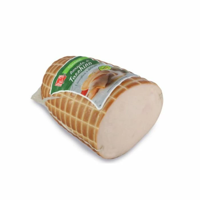 | ingredienti | Petto di tacchino (75%), acqua, amido di patata, destrosio, aromi, sale, gelificante: carragenina, correttori di acidità acetato di sodio, citrato di sodio; antiossidante:ascorbato di sodio, conservante:nitrito di sodio. SENZA GLUTINE SENZA LATTOSIO |