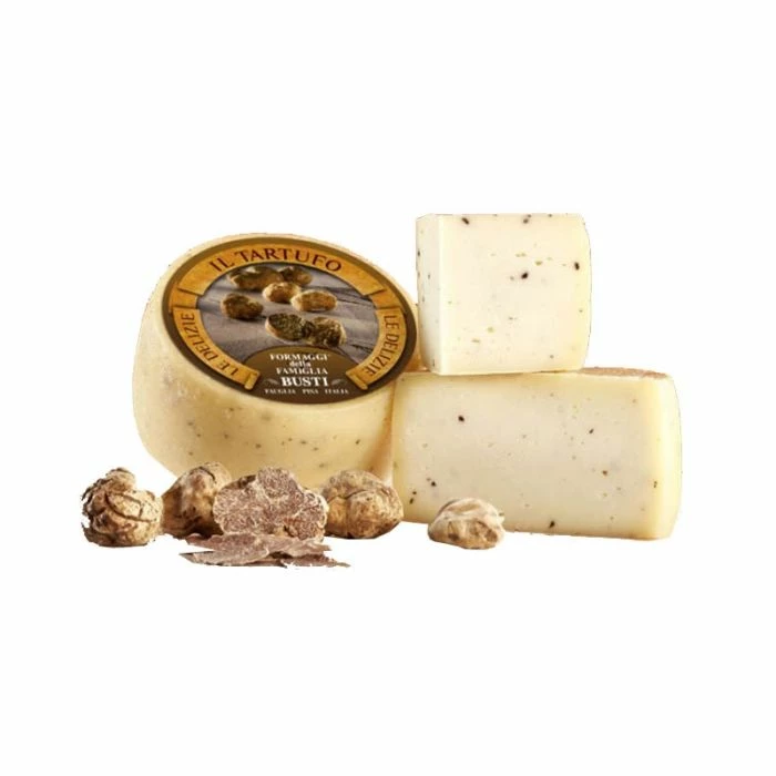Il tartufo di pura pecora della famiglia Busti è un formaggio toscano prodotto con latte di pura pecora con aggiunta di tartufo. Il formaggio si presenta di colore bianco con all’interno pezzi di tartufo, ha un caratteristico sapore di latte appena munto,con il caratteristico sapore di tartufo. Questo formaggio è ottimo consumato in purezza accompagnato da un buon vino toscano come la Vernaccia.