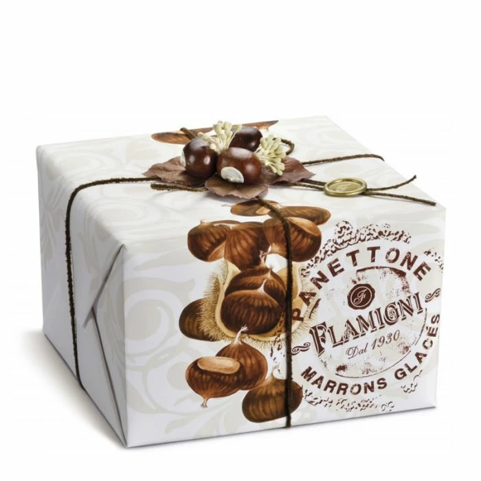 Panettone Flamigni ai Marron Glaces 1 Kg è un panettone artigianale che viene preparato da Flamigni utilizzanto materie prime di prima qualità e ingredienti naturali. La caratteristica fondamentale di questo panettone è la presenza di selezionati Marron Glaces all’interno dell’impasto che conferiscono un gusto particolare ed unico. Il Panettone viene glassato con i Marron Glaces senza uva sultanina e agrumi canditi, è un prodotto dolciario da forno a lievitazione naturale, soggetto a calo naturale.