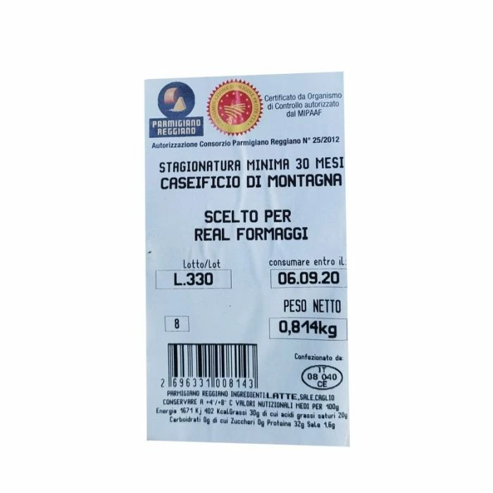 | ingredienti | latte crudo di vacca 99,895%,sale 1,102,caglio di vitello 0,003%. Nel formaggio Parmigiano-Reggiano non sono presenti conservanti o altri additivi. |
