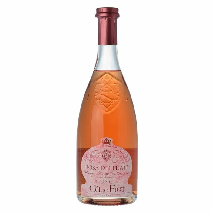 Il Rosa dei Frati Ca dei Frati è un vino rosato che sul Lago di Garda chiamano Chiaretto prodotto con le uve a bacca rossa classiche del Garda. I vigneti da cui provengono tali uve sono a Desenzano del Garda su un terreno calcareo-argilloso e vengono vendemmiate intorno all’inizio di settembre e portate in cantina per la macerazione. Questo processo avviene a bassa temperatura e permette la cessione di sostanze aromatiche e coloranti dalle bucce al mosto, quando il colore risulta quello desiderato si separano le bucce e il mosto fermenta in acciaio ad una temperatura di circa 16°C. Successivamente il vino rimane in acciaio per un affinamento di 6 mesi prima di essere imbottigliato.